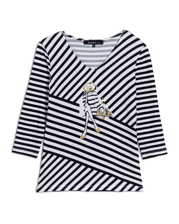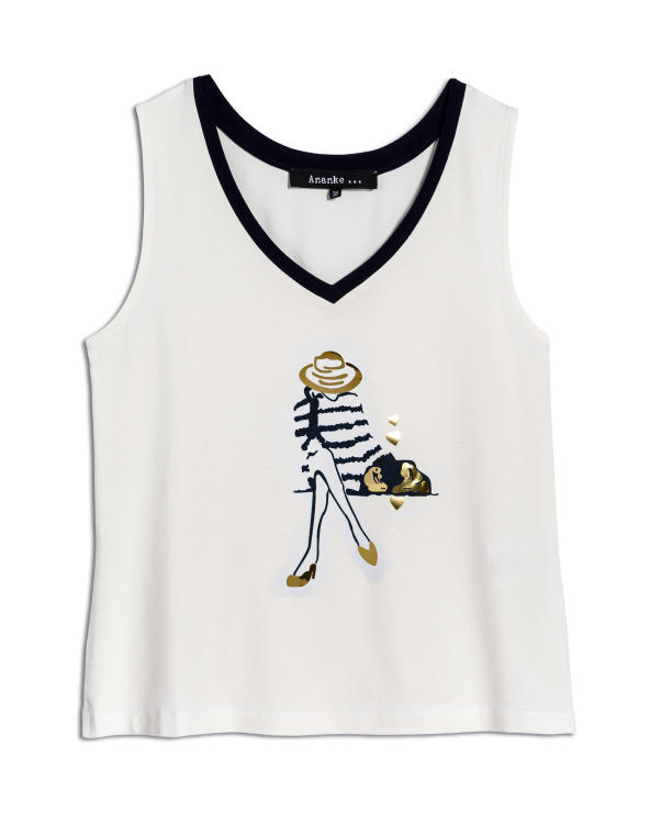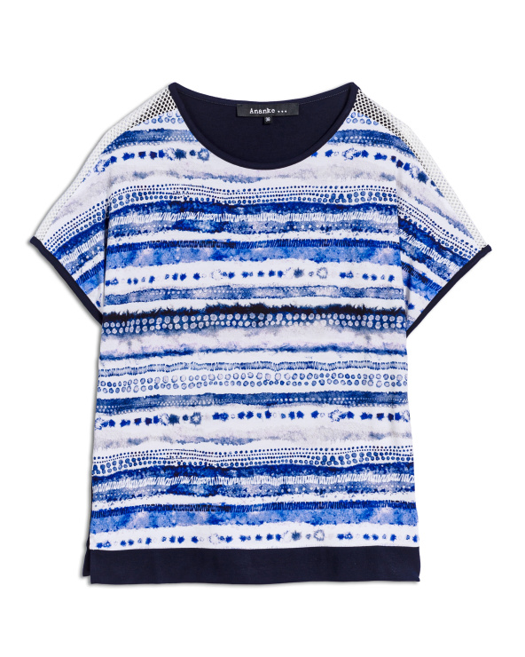- Coupe droite - Encolure ronde - Manches courtes - Dos coloris noir uni